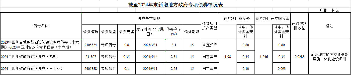 瀘州市公共交通集團(tuán)有限公司截止2024年末新增地方政府專(zhuān)項(xiàng)債券存續(xù)期信息公開(kāi)